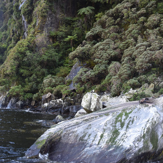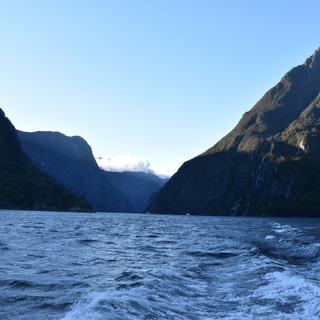 Les Milford Sound sont connus pour être l’un des endroits les plus pluvieux de NZ. Souvent très nuageux, le rendu est assez magnifique et plutôt mystique lorsque le lieu est couvert de nuages bas. Mais pour nous, encore mieux, il a plu la veille, assez pour que les 100 cascades des fjords soient au rendez-vous et il fait beau le jour J. On ne peut pas rêver mieux.