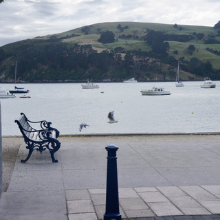 Tout en bas se trouve le village Akaroa, connu pour être un petit village d’empreinte française. Paraît-il que nous avons voulu les coloniser mais encore une fois, nos copains les britanniques nous ont devancé. On y retrouve une boulangerie, une boucherie, quelques cafés aux allures des petites villes en pavés de chez nous et des noms de rue à connotation française.
